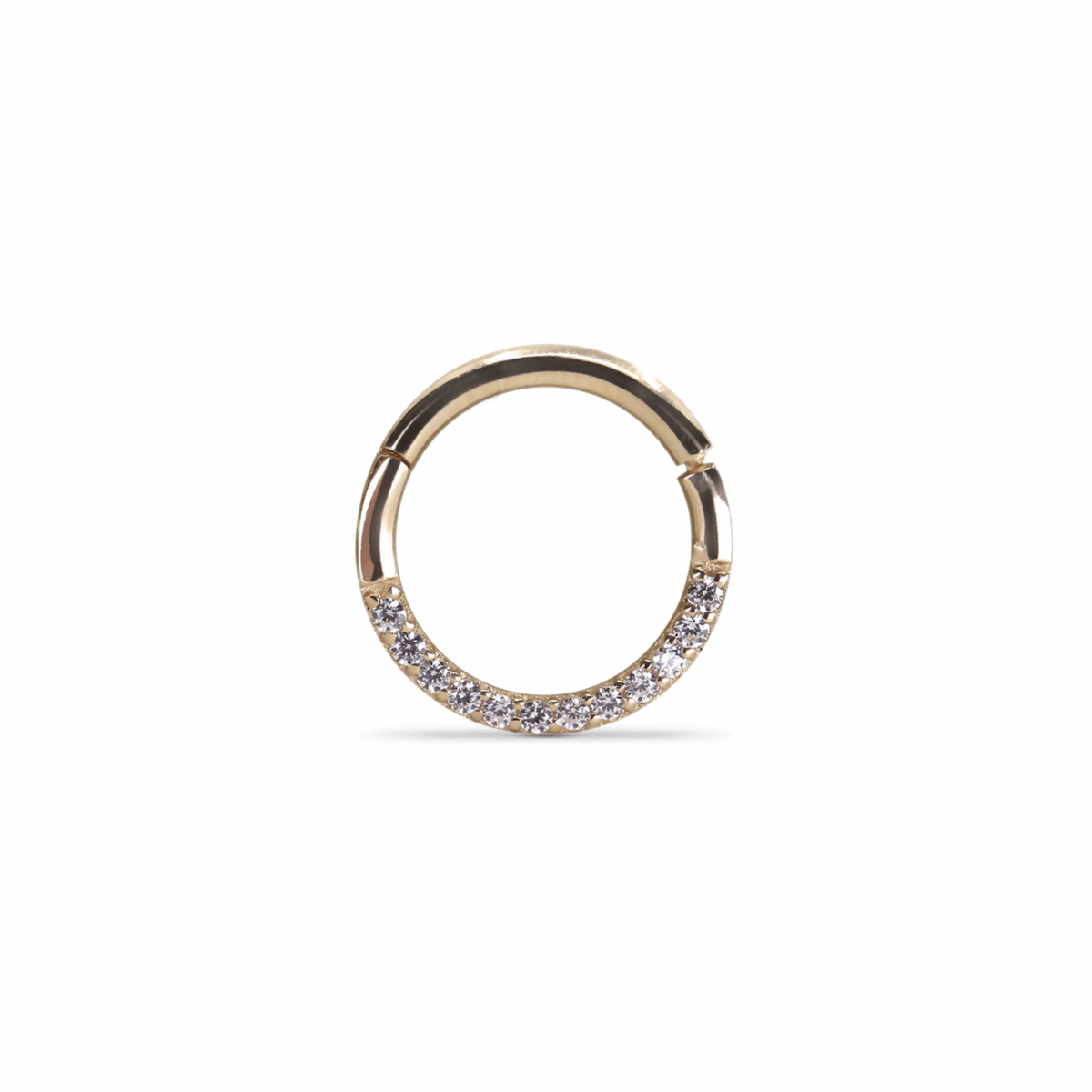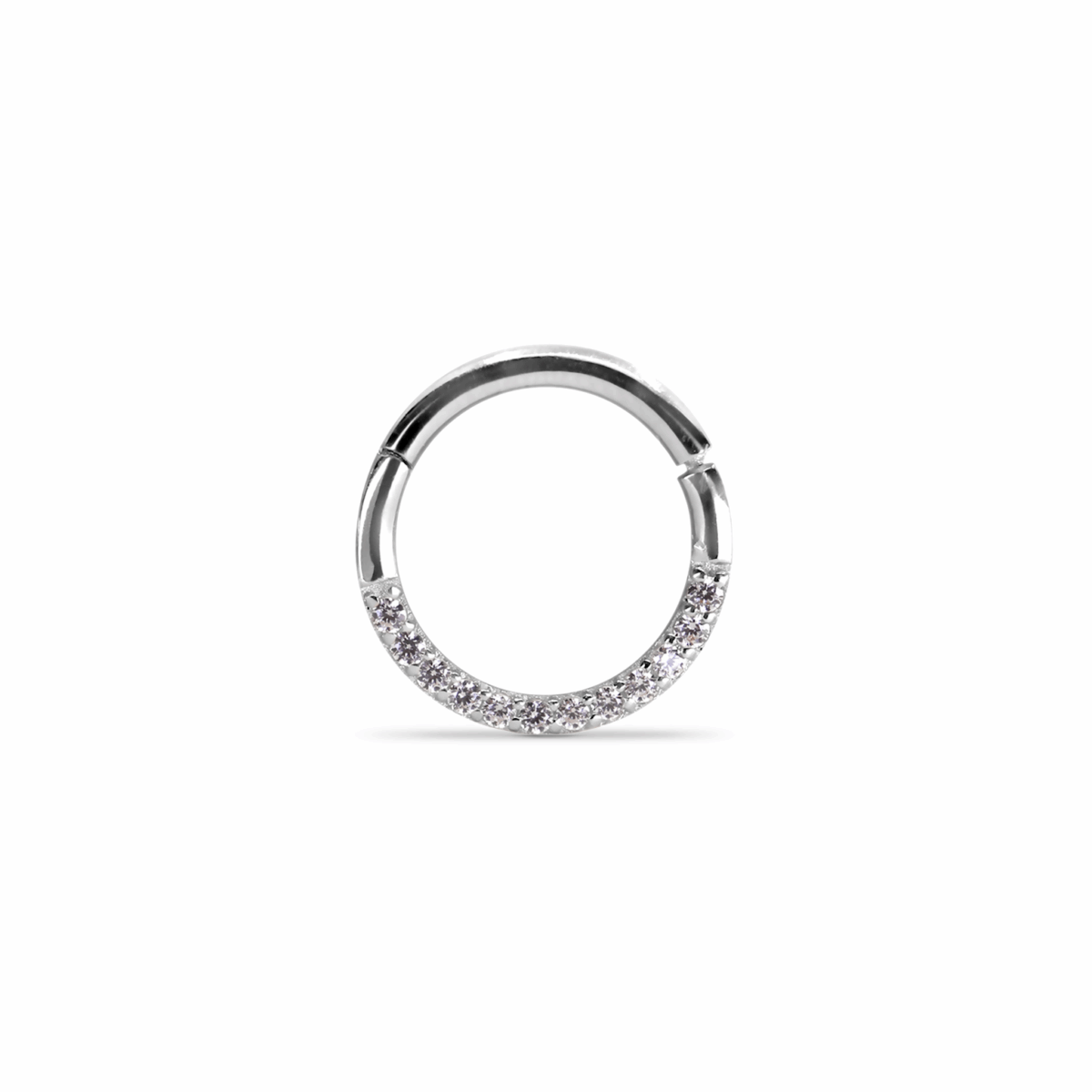18g eternity with a row of Cz, sits snug for most septum, daith, helix and other ear piercings for a lovely and unique look!