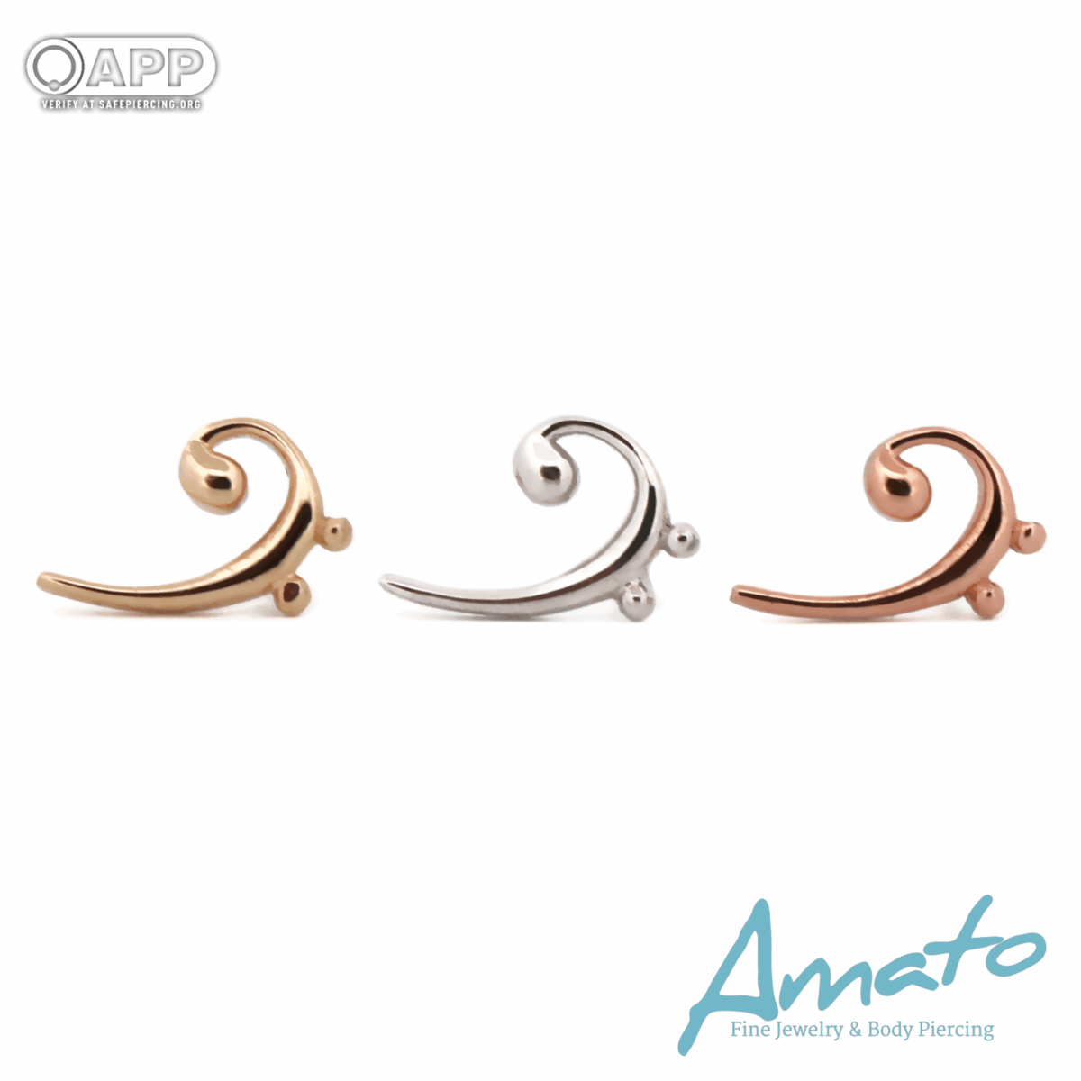 Elegant and expressive, this sleek bass clef design is perfect for music lovers and minimalists alike. Crafted in solid 14K gold with a high-polish finish, it brings a refined artistic touch to any piercing. Its graceful curve and smooth lines create a timeless look that stands out effortlessly.