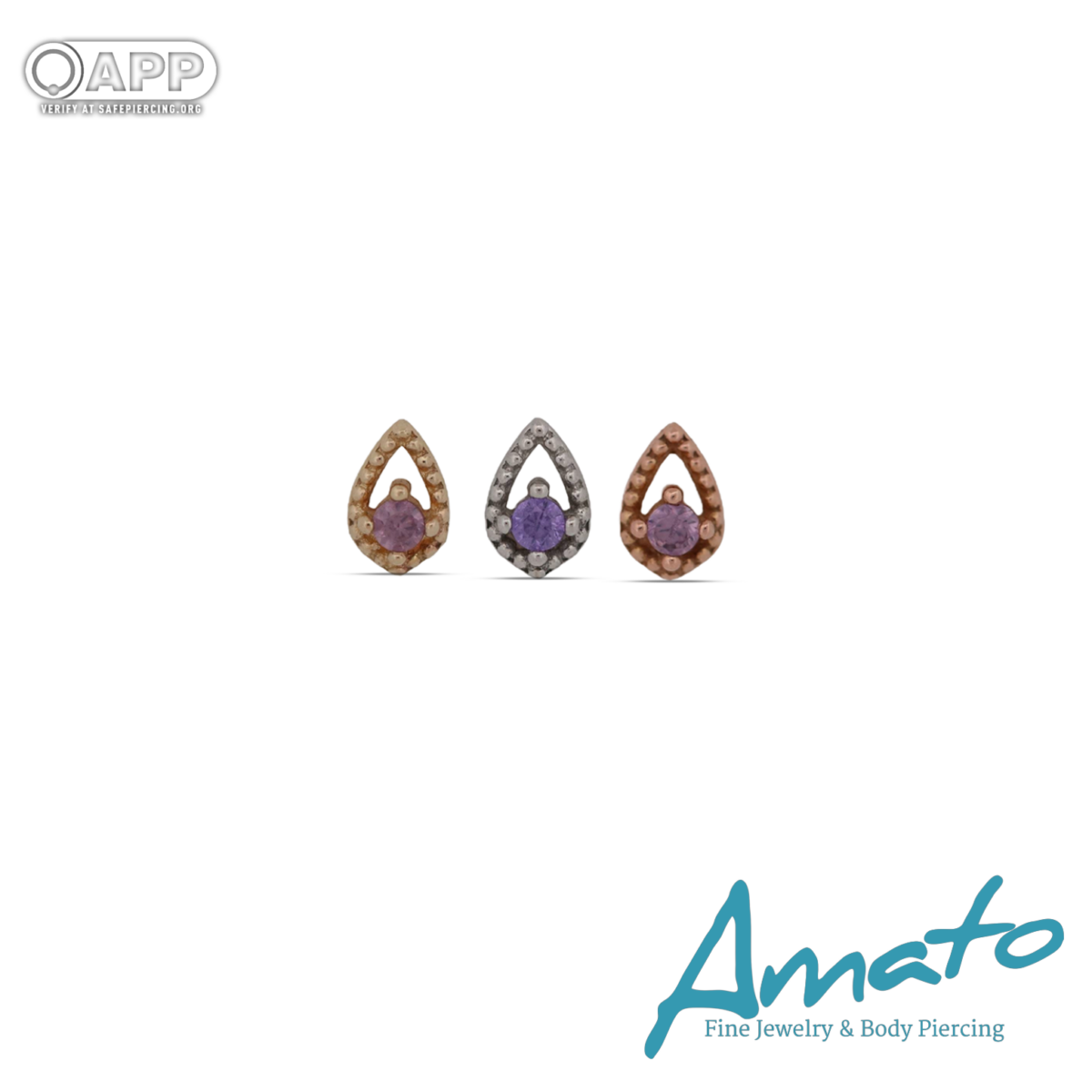 Beaded Pear 18g Threadless 14k Gold (Amethyst cz)