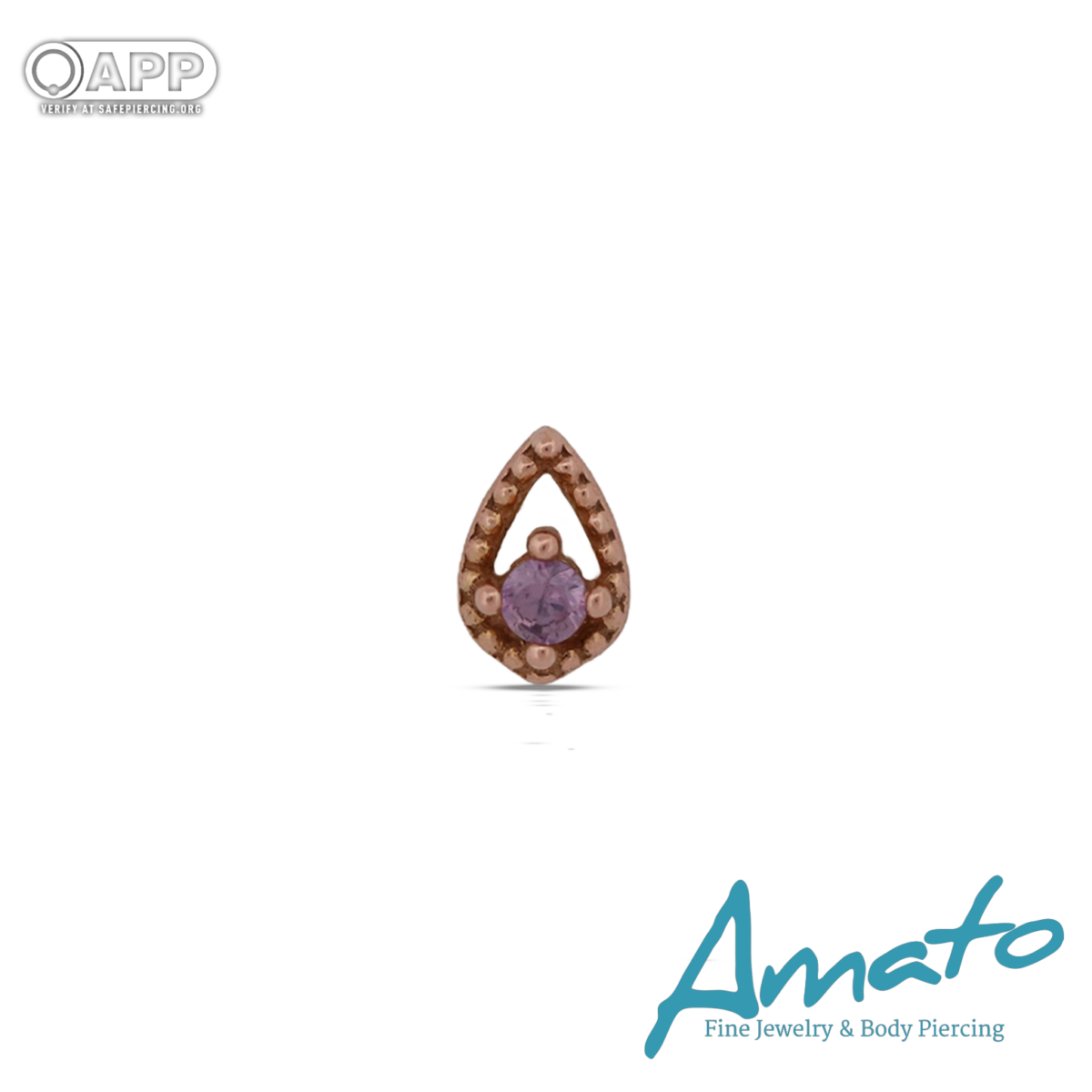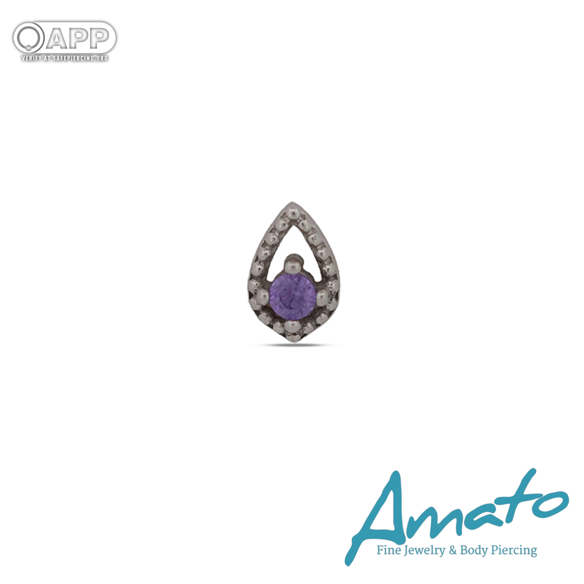 Add a touch of color with this elegant pear-shaped design. Featuring a vibrant amethyst center framed by delicate beaded detailing, this piece is crafted in 14k gold for a refined yet eye-catching finish. Perfect for bringing a soft pop of color and sparkle to any piercing.