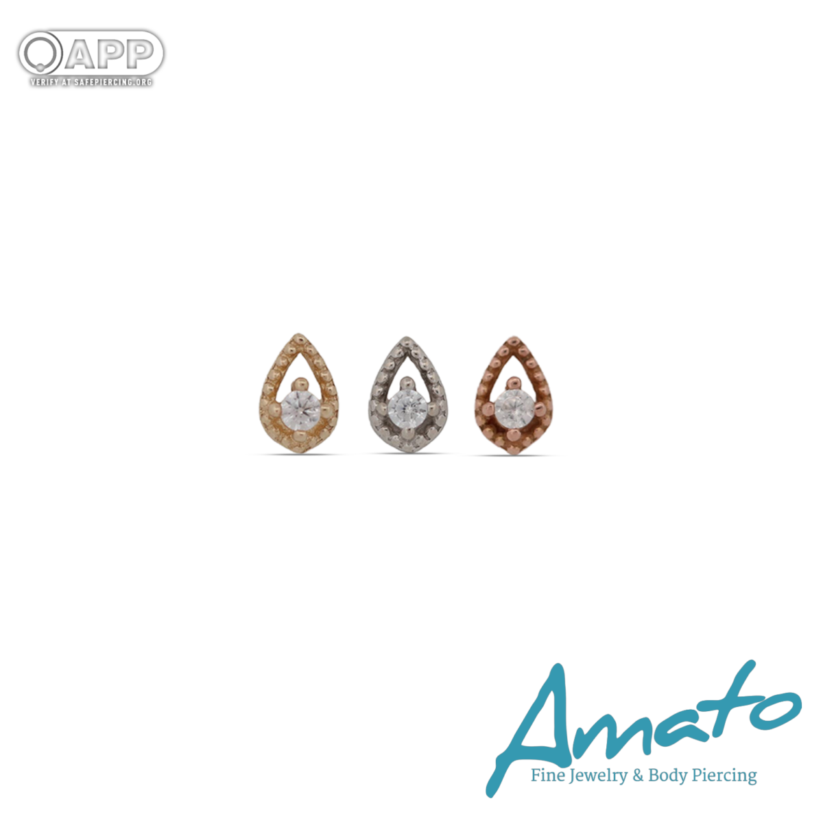 A timeless pear-shaped design with a brilliant center stone, surrounded by delicate beaded detailing for added texture and shine. Crafted in 14k gold, this piece offers a perfect balance of elegance and everyday sparkle—ideal for elevating any piercing.