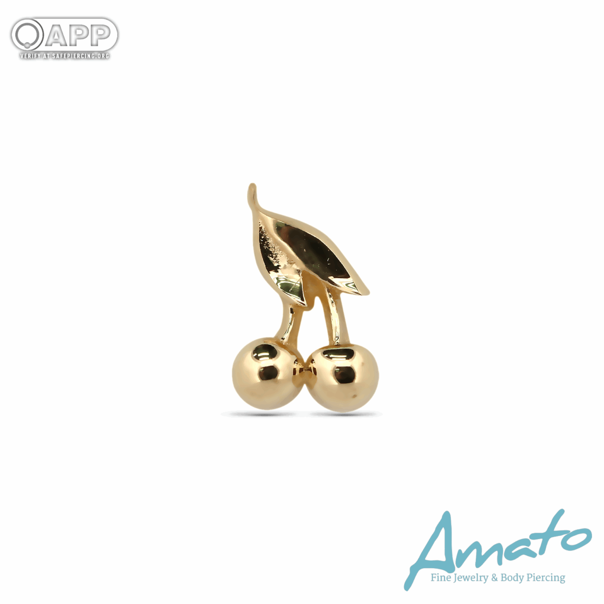 Playful and polished, this cherry design adds a fun touch of sweetness to your piercing collection. Made from solid 18K gold, the high-shine finish and smooth detailing create a bold yet refined look that catches the light beautifully.