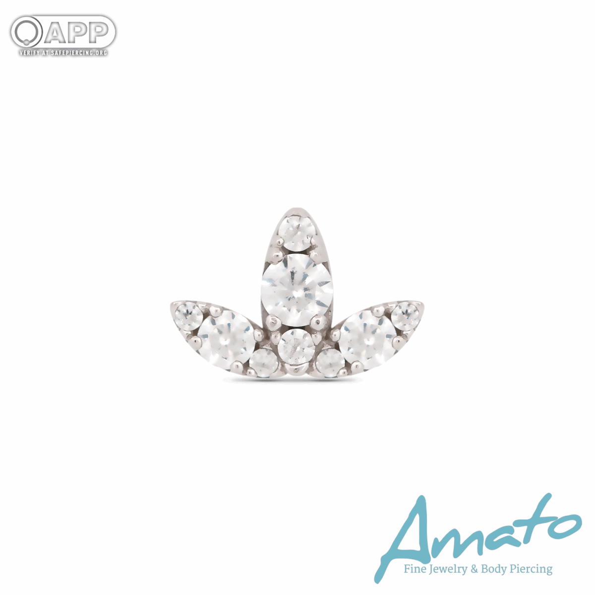 This Gemmed Fan brings brilliant sparkle and a sleek, balanced silhouette to any piercing. Designed with a larger center stone and a cluster of smaller round gems arranged in a soft fan shape, it delivers a bright, eye-catching shine while keeping a clean, refined look.