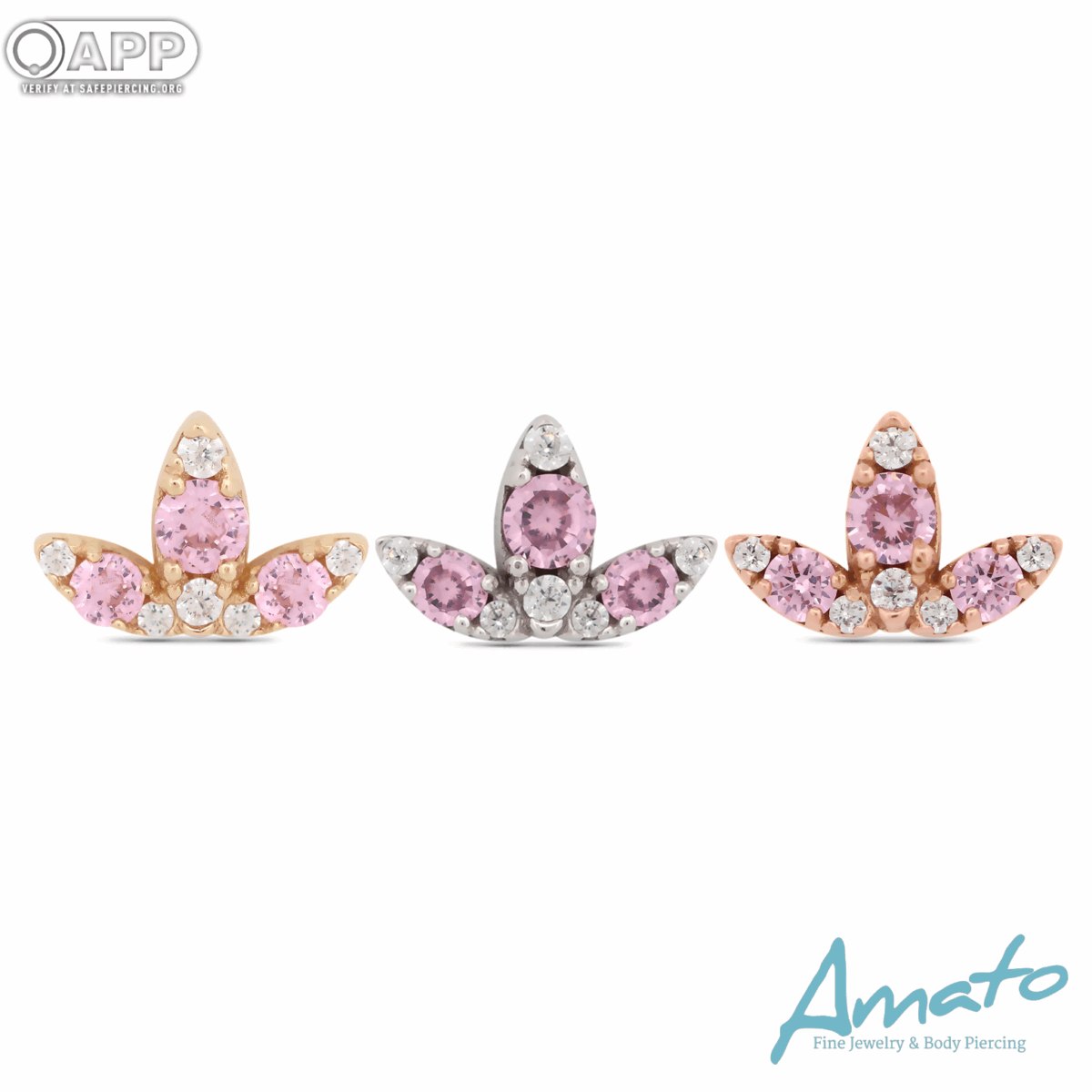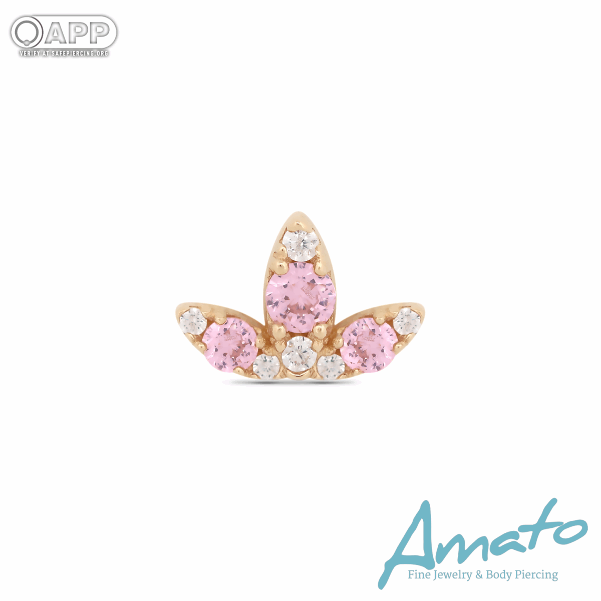 Gemmed Marquise Fan (Clear & Pink) 18g Threadless 14k Gold