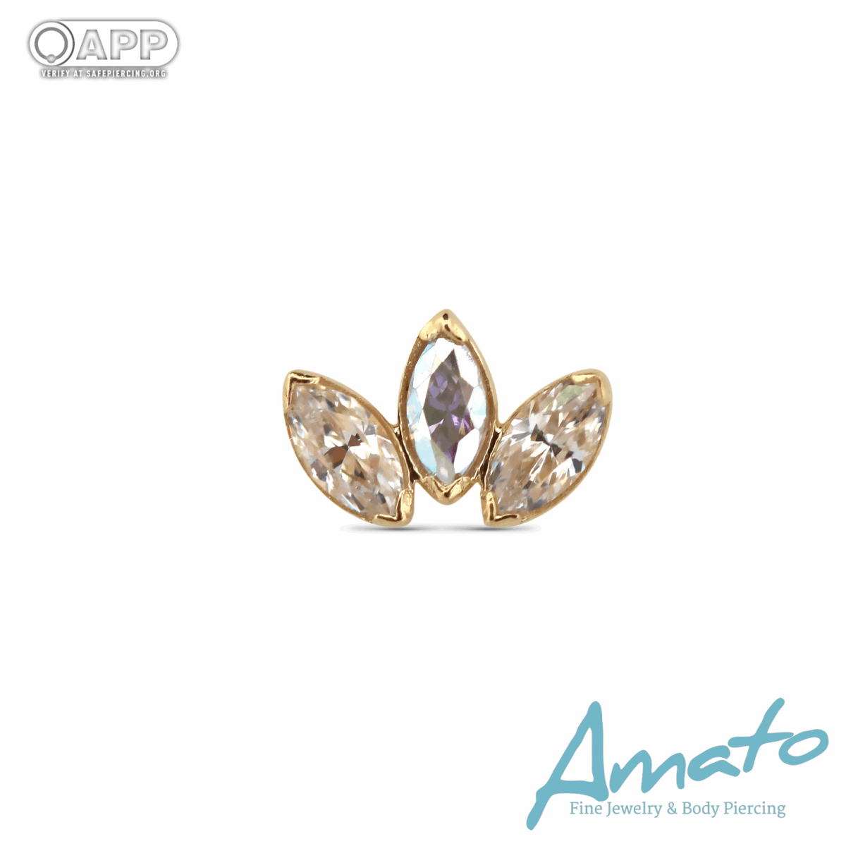 Mini Marquise Fan of 3 (Aurora & Clear) 18g Threadless (18k Gold)